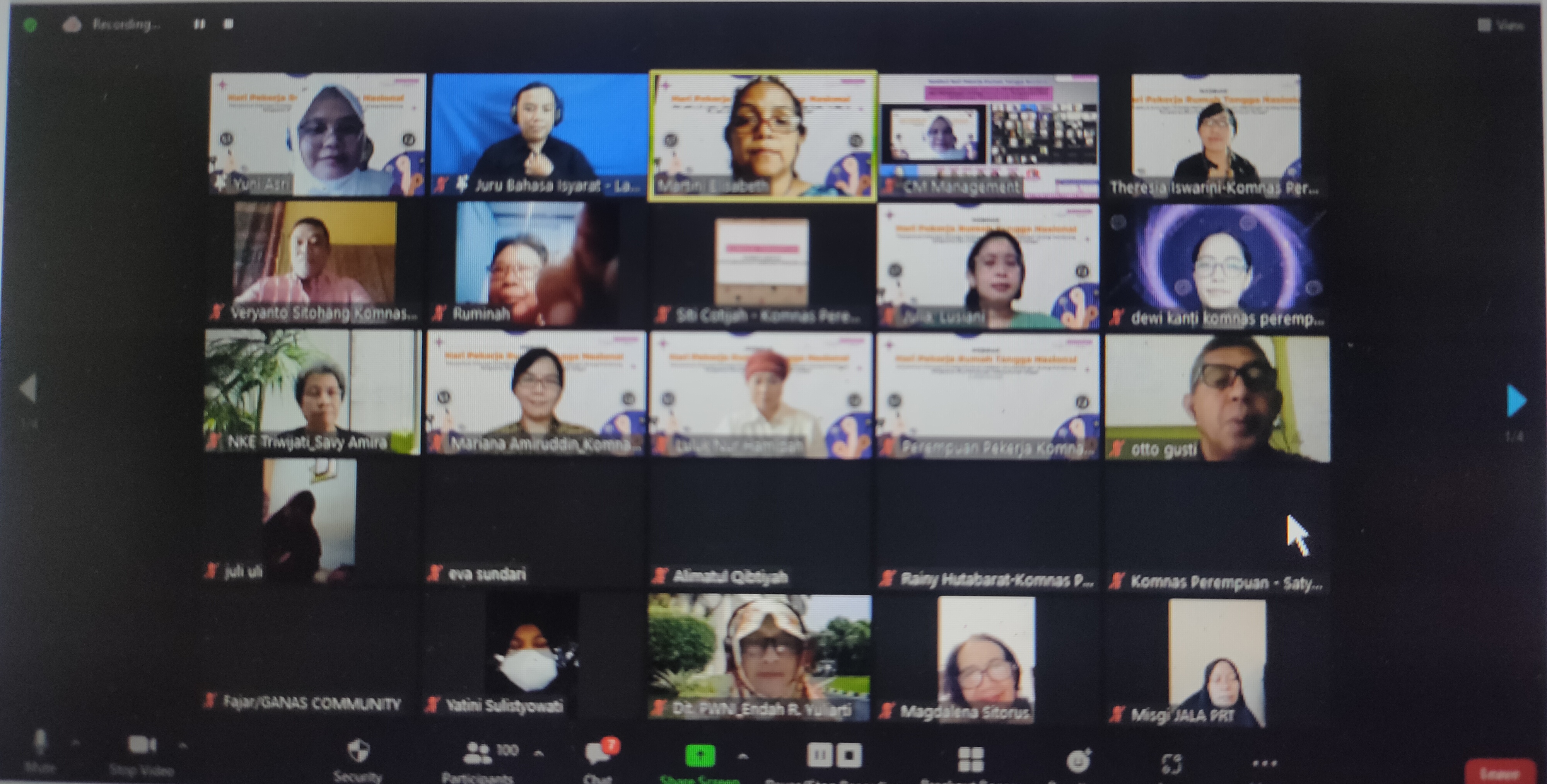 Saat ini RUU PPRT masuk ke dalam Program Legislasi Nasional 2022 dan masih menunggu proses pengesahan menjadi RUU Inisiatif DPR. Situasi ini tentu membutuhkan dorongan dari luar parlemen, termasuk dari Komnas Perempuan, agar para pembuat kebijakan dapat segera mengesahkannya. Merespon hal tersebut dan dalam rangka Hari PRT Nasional maka Komnas Perempuan menyelenggarakan webinar bertajuk “Memperkuat Dukungan Pembuat Kebijakan dan Membangun Strategi Mendorong Pengesahan RUU Pelindungan Pekerja Rumah Tangga”. Webinar ini diharapkan dapat memperkuat dukungan terhadap RUU PPRT dan melahirkan berbagai strategi alternatif bagi upaya advokasi RUU PPRT ke depan. Acara ini dibuka oleh Wakil Ketua Komnas Perempuan, Mariana Amiruddin dan pengantar dari Theresia Iswarini, Komisioner Komnas Perempuan. Juga dihadiri berbagai narasumber diantaranya Willy Aditya, S. FIL, MDM, Wakil Ketua Baleg DPR RI ; Luluk Nur Hamidah, M. Si, Anggota DPR RI, Fraksi PKB; Eva Kusuma Sundari SE, MSi, Direktur Institut Sarinah dan testimoni dari perwakilan PRT yaitu Yuni Sri Rahayu, PRT Sapulidi – JALA PRT serta pemberi kerja PRT, Lusiani Julia. Webinar berlangsung selama hampir tiga jam dan diikuti 115 peserta dari berbagai masyarakat dari berbagai kalangan serta media.