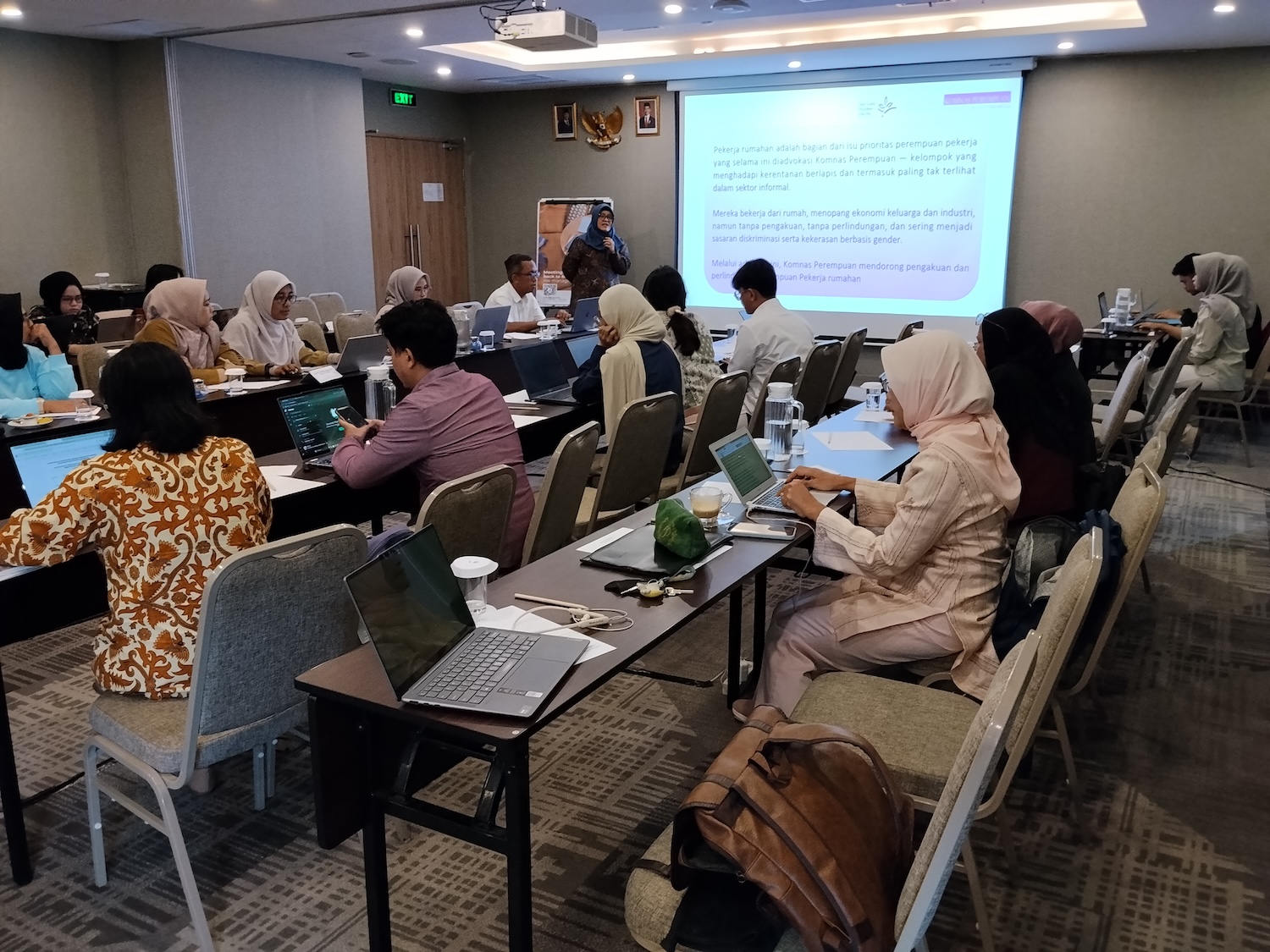 Kegiatan ini dihadiri oleh perwakilan dari berbagai kementerian dan lembaga, antara lain Kementerian Hukum dan Hak Asasi Manusia, Kementerian Ketenagakerjaan, Kementerian Dalam Negeri, Kementerian Koperasi dan Usaha Kecil dan Menengah (KemenKopUKM), Kementerian Koordinator Bidang Pembangunan Manusia dan Kebudayaan (Kemenko PMK), Badan Pusat Statistik (BPS), dan BPJS Ketenagakerjaan. Selain itu, hadir pula perempuan pekerja rumahan yang tergabungdalam Jaringan Pekerja Rumahan Indonesia (JPRI) sebagai perwakilan langsung dari kelompok pekerja yang menjadi fokus kebijakan.
