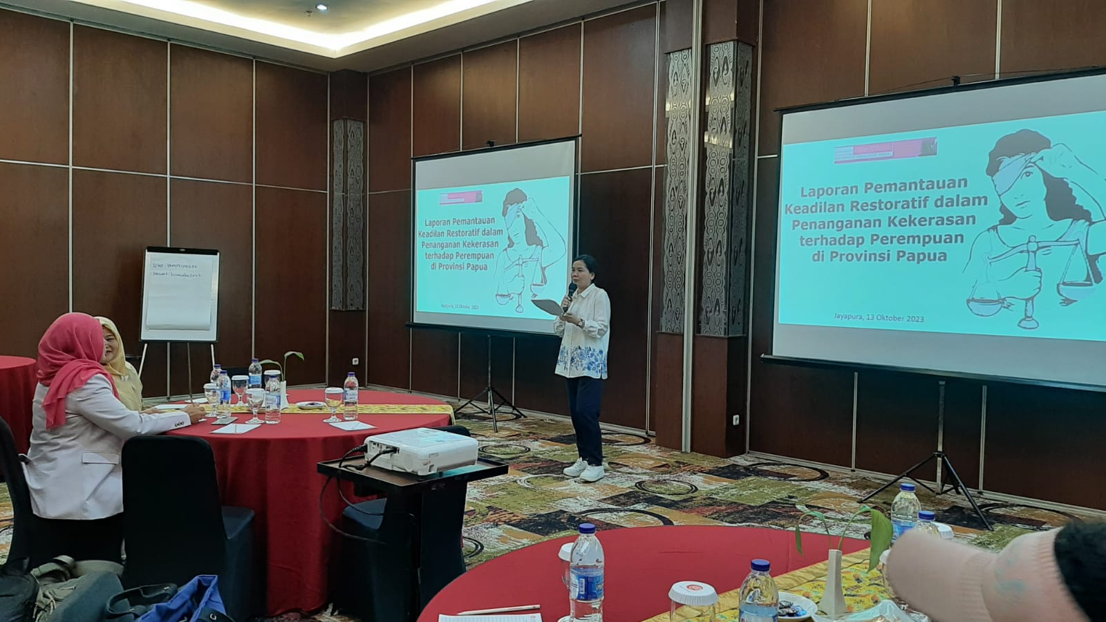 Komnas Perempuan, pada tanggal 13 dan 14 Oktober 2023 telah mengadakan kegiatan launching laporan pemantauan keadilan restoratif dalam penanganan kasus kekerasan terhadap perempuan serta diskusi terkait integrasi layanan HIV/AIDS dan kekerasan terhadap perempuan di Papua. Komnas Perempuan mengadakan kegiatan ini untuk mendapatkan masukan-masukan dari berbagai pihak mulai dari lembaga layanan bagi perempuan korban kekerasan, aparat penegak hukum, lembaga adat, dan lembaga keagamaan tentang mekanisme penanganan kasus kekerasan terhadap perempuan terutama yang menggunakan mekanisme keadilan restoratif dan sejenisnya. Komnas Perempuan berpandangan bahwa praktik-praktik penanganan kekerasan terhadap perempuan dengan mekanisme tersebut perlu dilihat lebih lanjut untuk memastikan prinsip-prinsip pemenuhan hak perempuan korban kekerasan atas keadilan, kebenaran, dan pemulihan dapat berlangsung secara tepat dan efektif. Selain itu, Komnas Perempuan juga perlu memastikan layanan pemulihan terintegrasi bagi perempuan korban kekerasan yang hidup dengan HIV/AIDS sebagai bagian dari tanggung jawab pemerintah Papua dalam penyelenggaraan layanan terpadu.