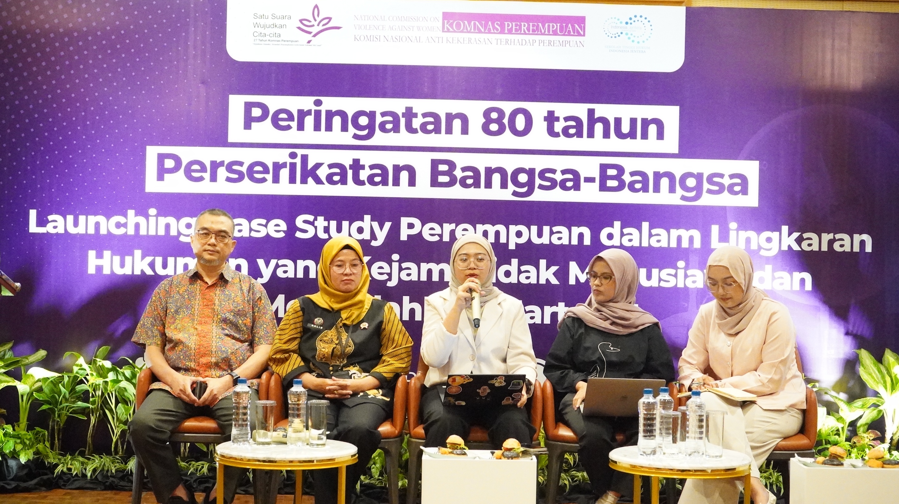 Komisi Nasional Anti Kekerasan terhadap Perempuan (Komnas Perempuan) bersama Sekolah Tinggi Hukum Indonesia (STHI) Jentera meluncurkan studi yang menyoroti pengalaman perempuan terpidana mati di Indonesia pada peringatan 80 tahun United Nations Day (UNDAY), di Jakarta, (24/10/2025). Selain sebagai sebagai riset akademis, peluncuran kajian ini juga merupakan upaya untuk menggugah kesadaran publik dan pembuat kebijakan tentang pentingnya menjamin hak untuk hidup, sekaligus menegaskan dimensi kemanusiaan yang sering luput dalam penerapan hukuman mati.