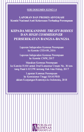 Seri DokumenKunci (SDK) Komnas Perempuan ke-14 ini mengangkat empat dokumenterkait pemenuhan dan perlindungan HAM Perempuan. Keempat dokumentersebut adalah: (a) Laporan Independen Komnas Perempuan keKomite CEDAW pada tahun 2016, (b) Laporan Independen KomnasPerempuan ke Komite CMW pada tahun 2017, (c) Masukan KomnasPerempuan ke Komite HAM untuk Draf Komentar Umum No. 36 tentangPasal 6 ICCPR tentang Hak Atas Hidup pada tahun 2017, dan (d) LaporanKomnas Perempuan ke Komisioner Tinggi HAM PBB dalam KunjunganResminya ke Indonesia pada tahun 2018.